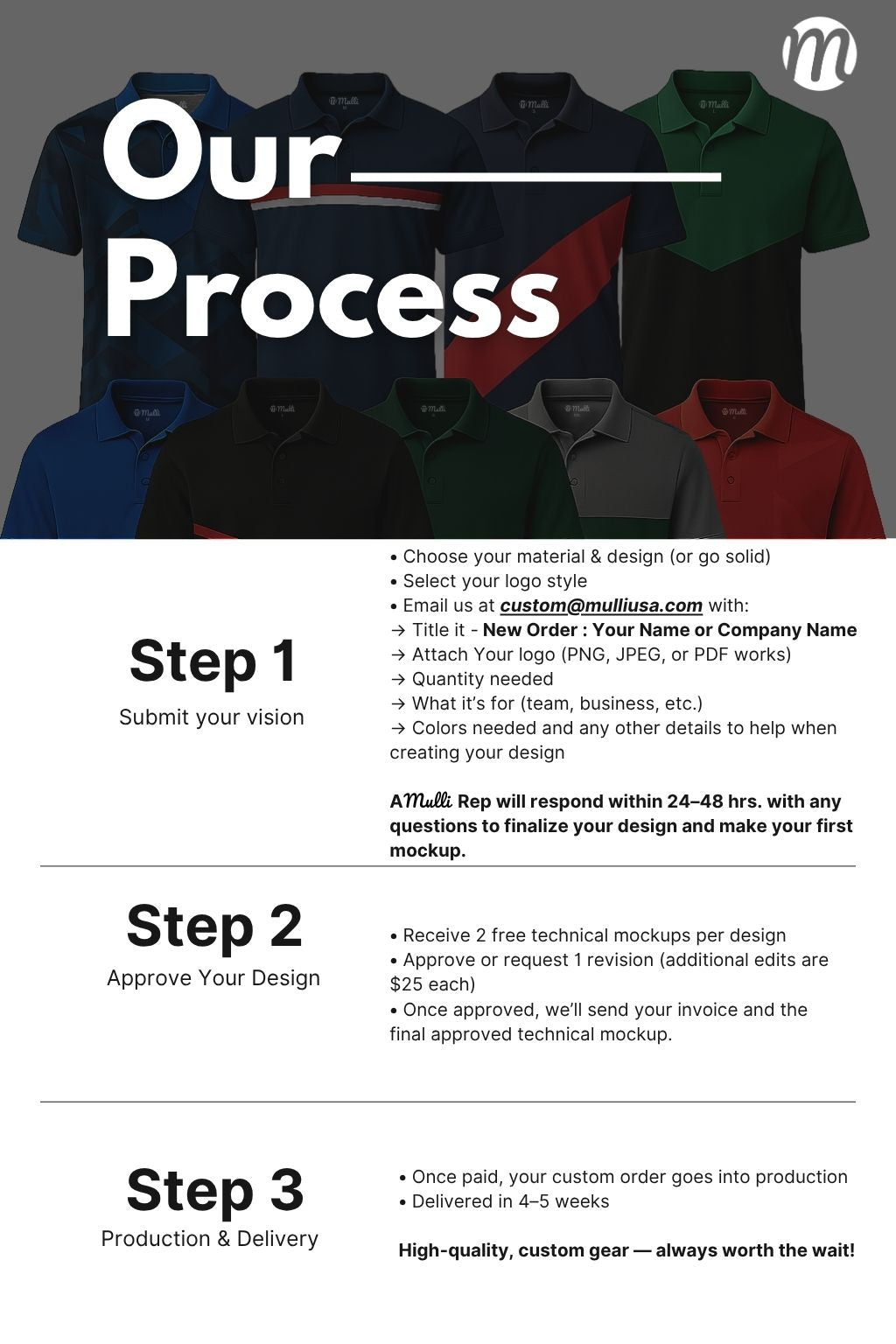 CONTACT US TO START YOUR ORDER! SEND YOUR YOUR LOGO TO CUSTOM@MULLIUSA.COM